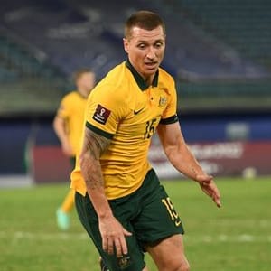 Melbourne Australia 27 January 2022 Mitchell Duke Of The Australian Socceroos Controls The Ball During The World Cup Qualifier Football Match Between Australia Socceroos And Vietnam On January 27 2022 At Aami